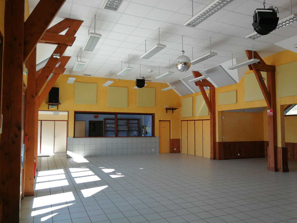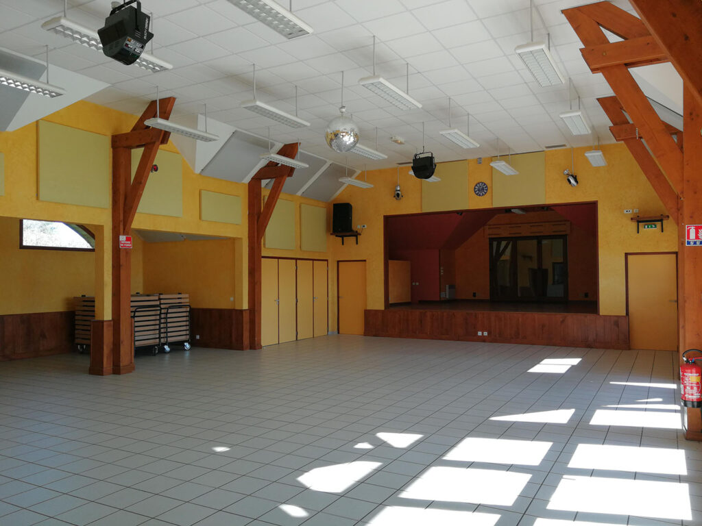 Une salle de 120 m2 avec scène, jeux de lumière, parabole TV.